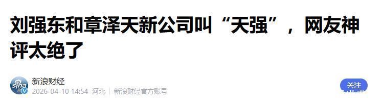 部分参考资料来源:新浪财经|刘强东和章泽天新公司叫“天强”,网友神评太绝了新浪财经|奶茶妹妹章泽天的精彩人生,一本网红的教科书青岛新闻网|刘强东章泽天成立新公司,名叫“天强”
